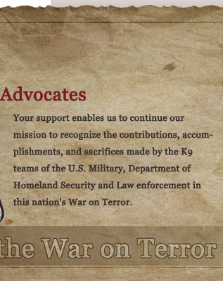 made by the K9 teams of the U.S. Military, Department of Homeland Security and Law enforcement in this nation's War on Terror.